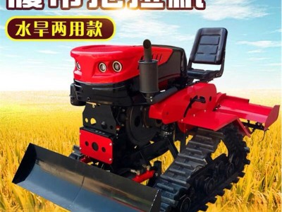 履带旋耕机设计比轮式有的适应性,底盘低,稳定性好,履带附着系数大,可以抵倾斜和下坡的坡地。履带拖拉机属于全地形作业机械,具有原地转弯转向的机动性,爬坡和越野性能强。